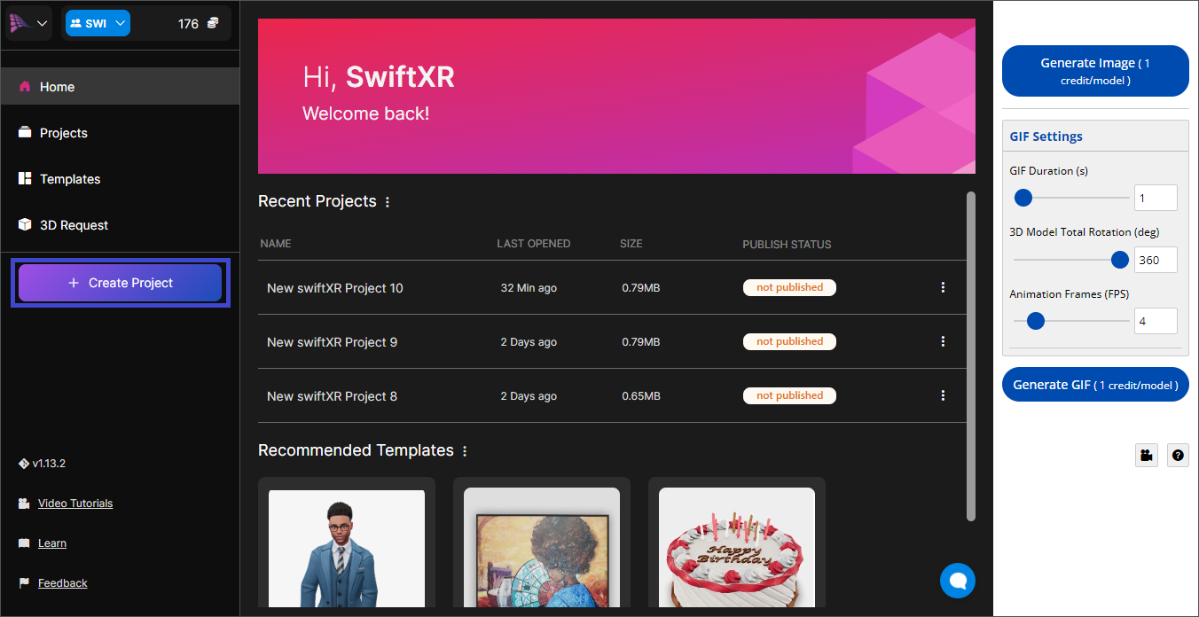 On the SwiftXR Hub, Create a new project and import your 3D model or download from our 3D stores.