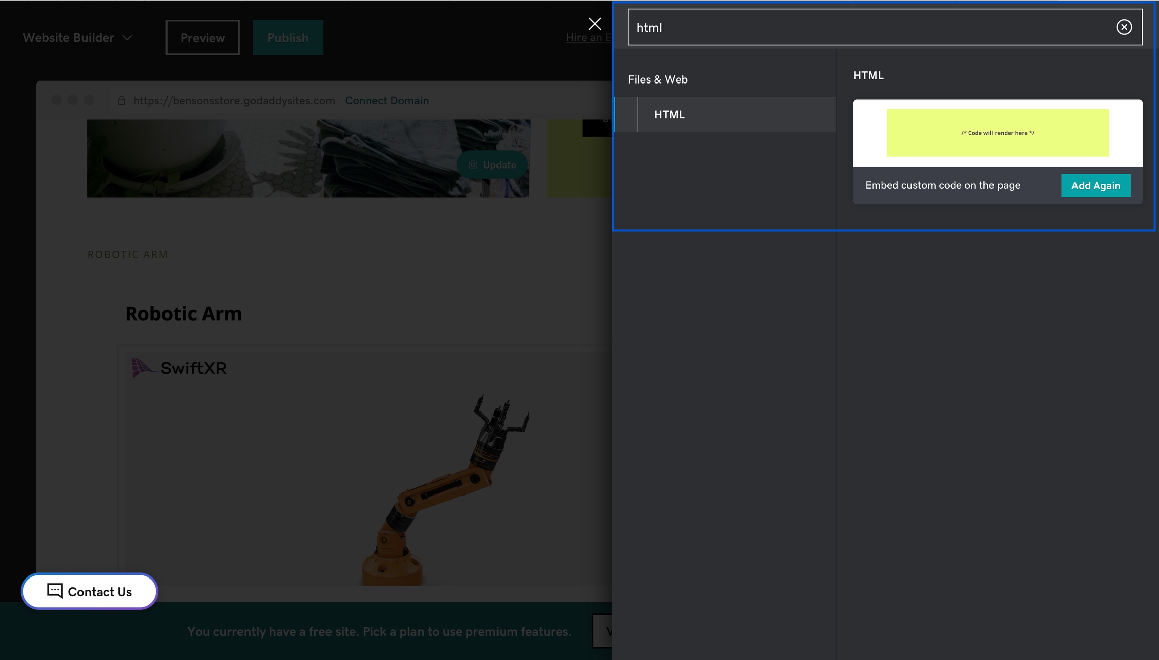 Add or embed 3D, Augmented Reality (AR), and Virtual Reality (VR) content/design to your GoDaddy website.