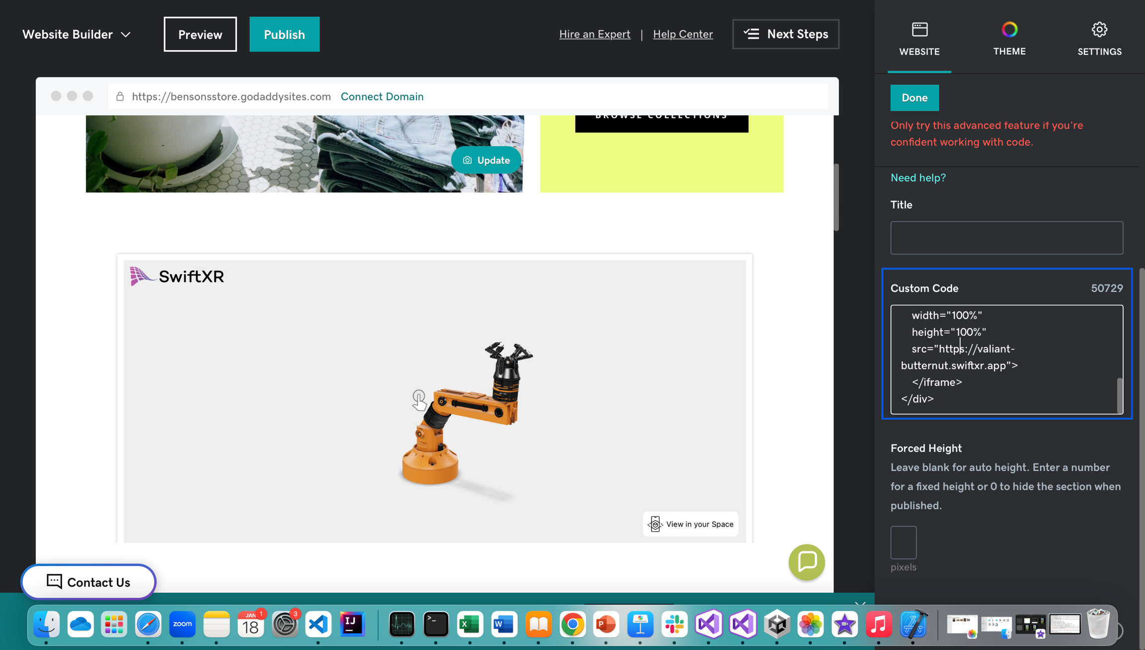 Integrating SwiftXR into GoDaddy Websites