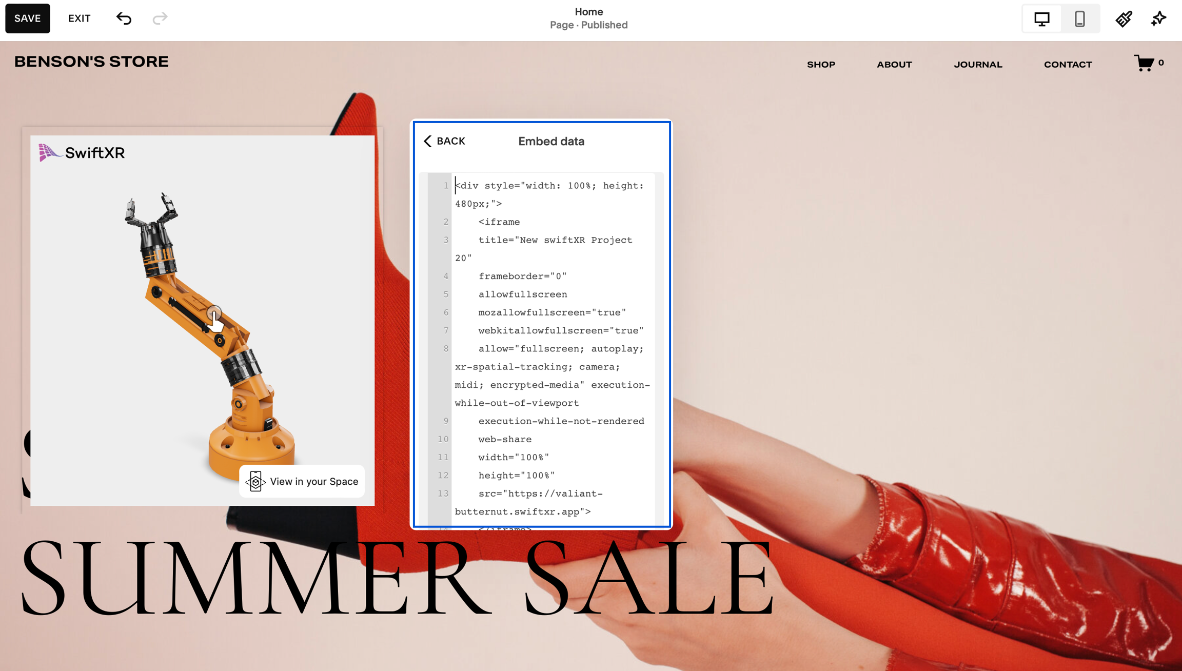 Add or embed 3D, Augmented Reality (AR), and Virtual Reality (VR) content/design to your Squarespace website.