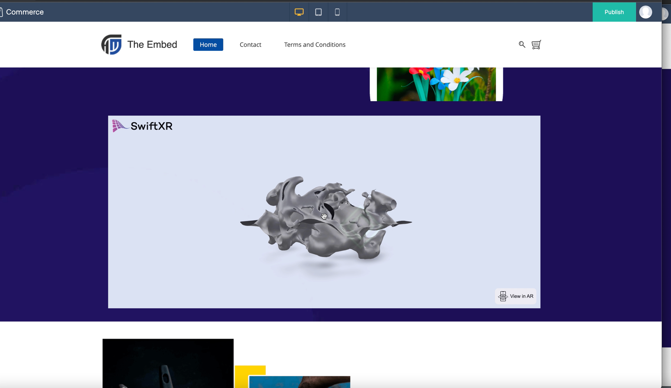 Add or embed 3D, Augmented Reality (AR), and Virtual Reality (VR) content/design to your Zoho Commerce
